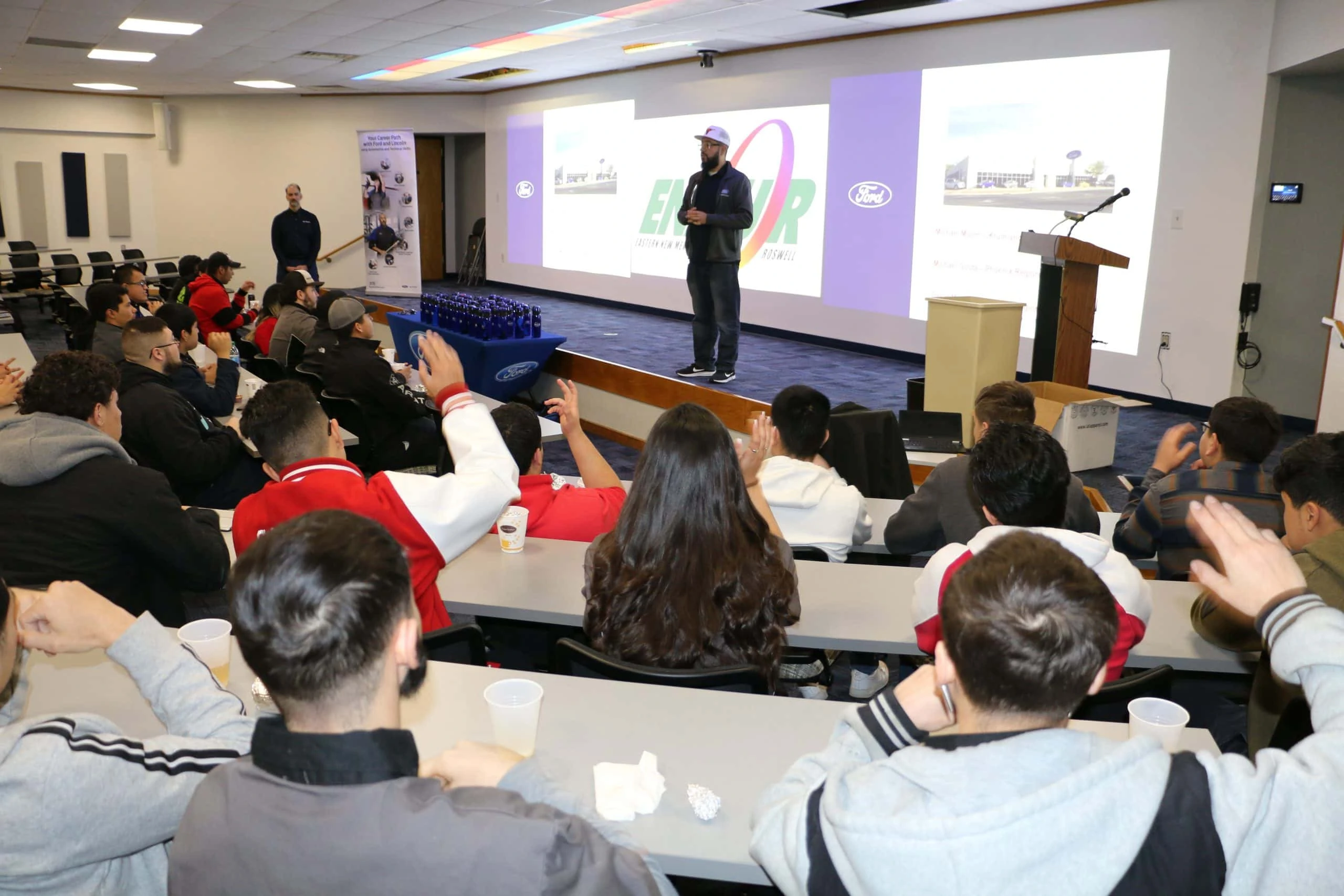 Martinez said his job was to recruit and retain employees with Ford Motor Corp. He works to help change the culture and perception of what it means to be an automotive technician. He told students it is a great career with salaries often topping $100,000 a year.