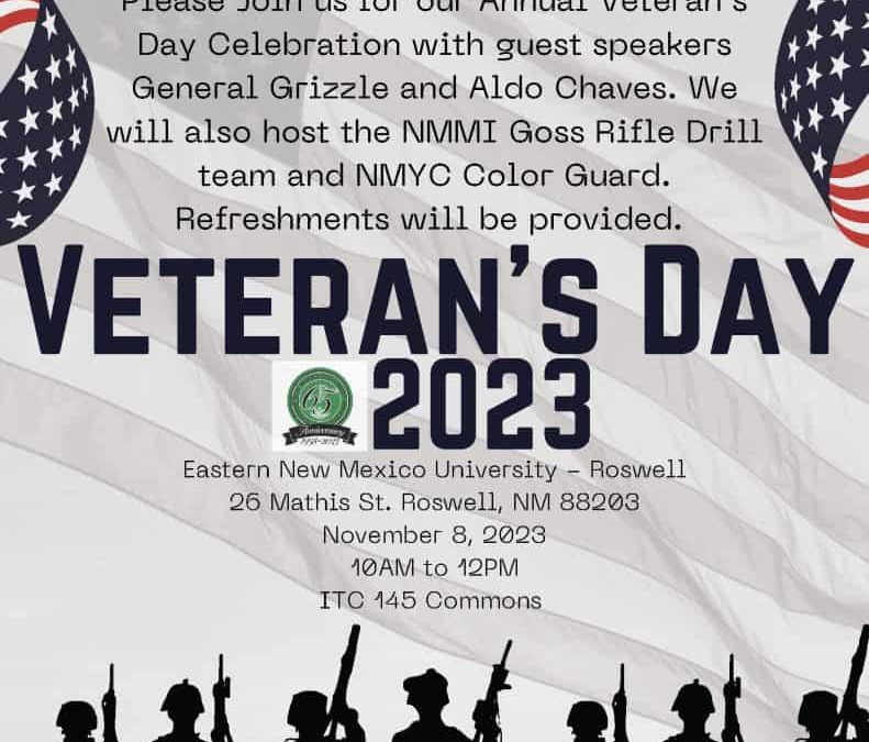 Special Guest Speaker: Cisco Brink A Veterans Day celebration will take place in the ITC Commons on Tuesday, November 11th, between 11:00 AM and 1:00 PM. We are honored to present special speaker Cisco Brink along with a military presentation by New Mexico Military...