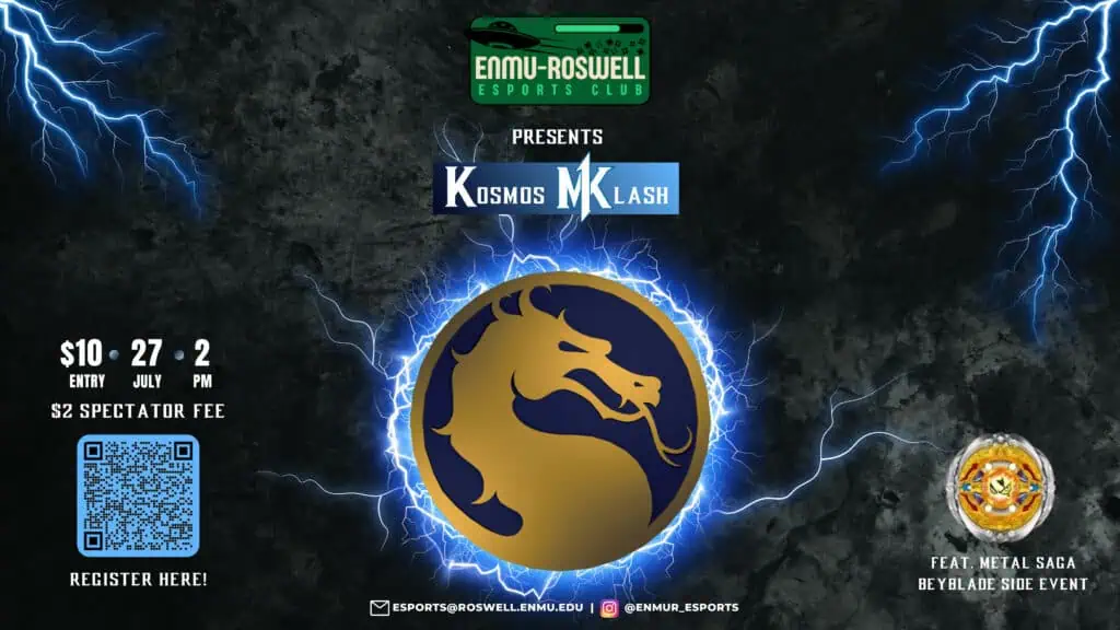 Join the ENMU-Roswell E-Sports Club Saturday afternoon in the Student Lounge for the next tournament. Registration fee is $2 USD for spectators and $10 USD to enter the competition.