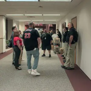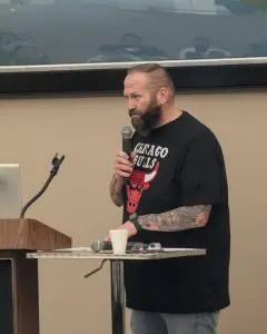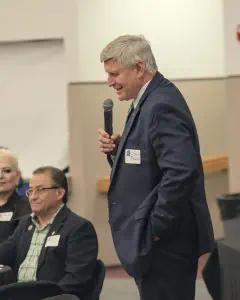 Dr. Shawn Powell, Campus President, and Eric Mann, EMS Program Director, say a few words to guests gathered in the ITC Commons before introducing the event’s speakers.