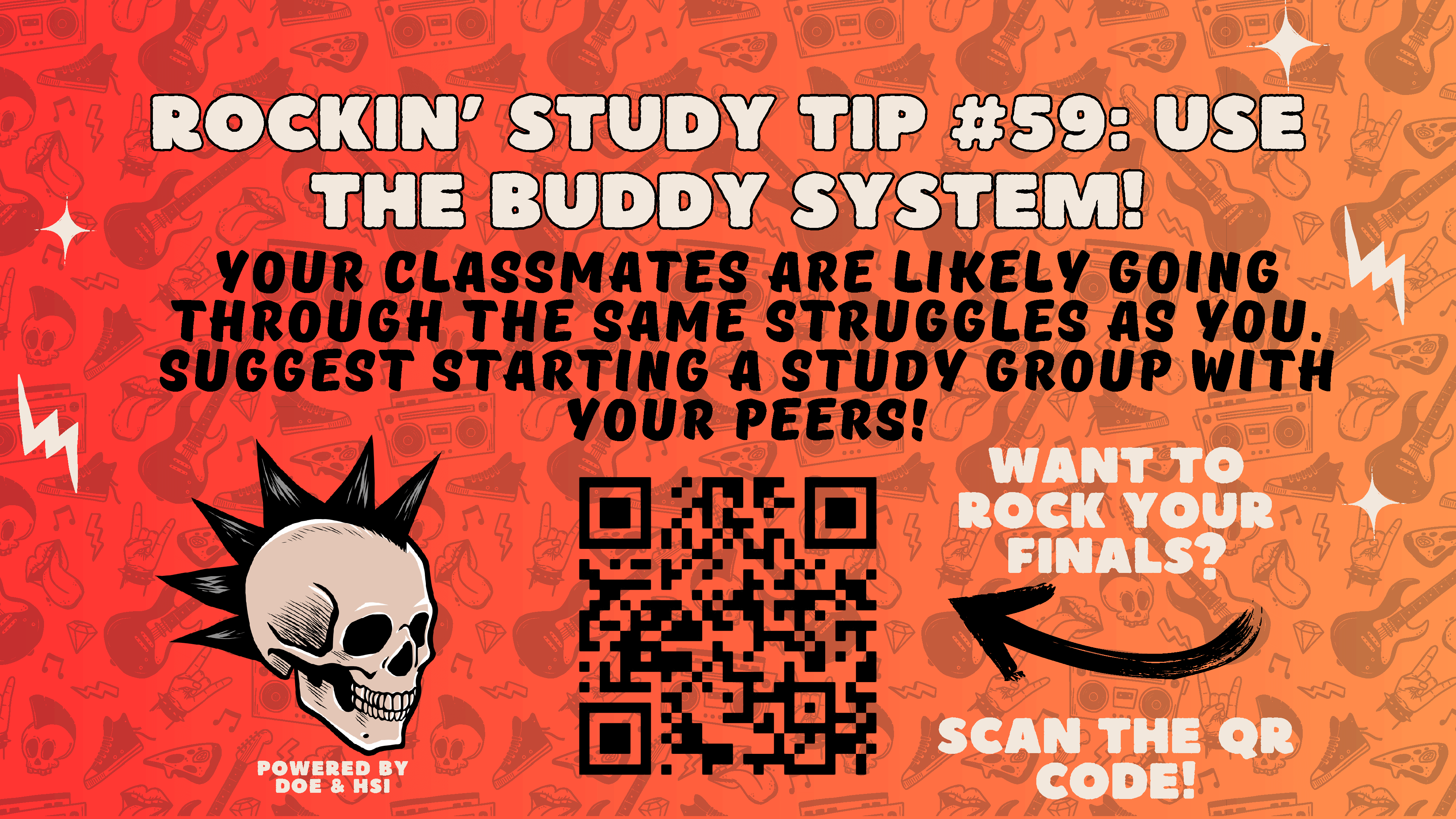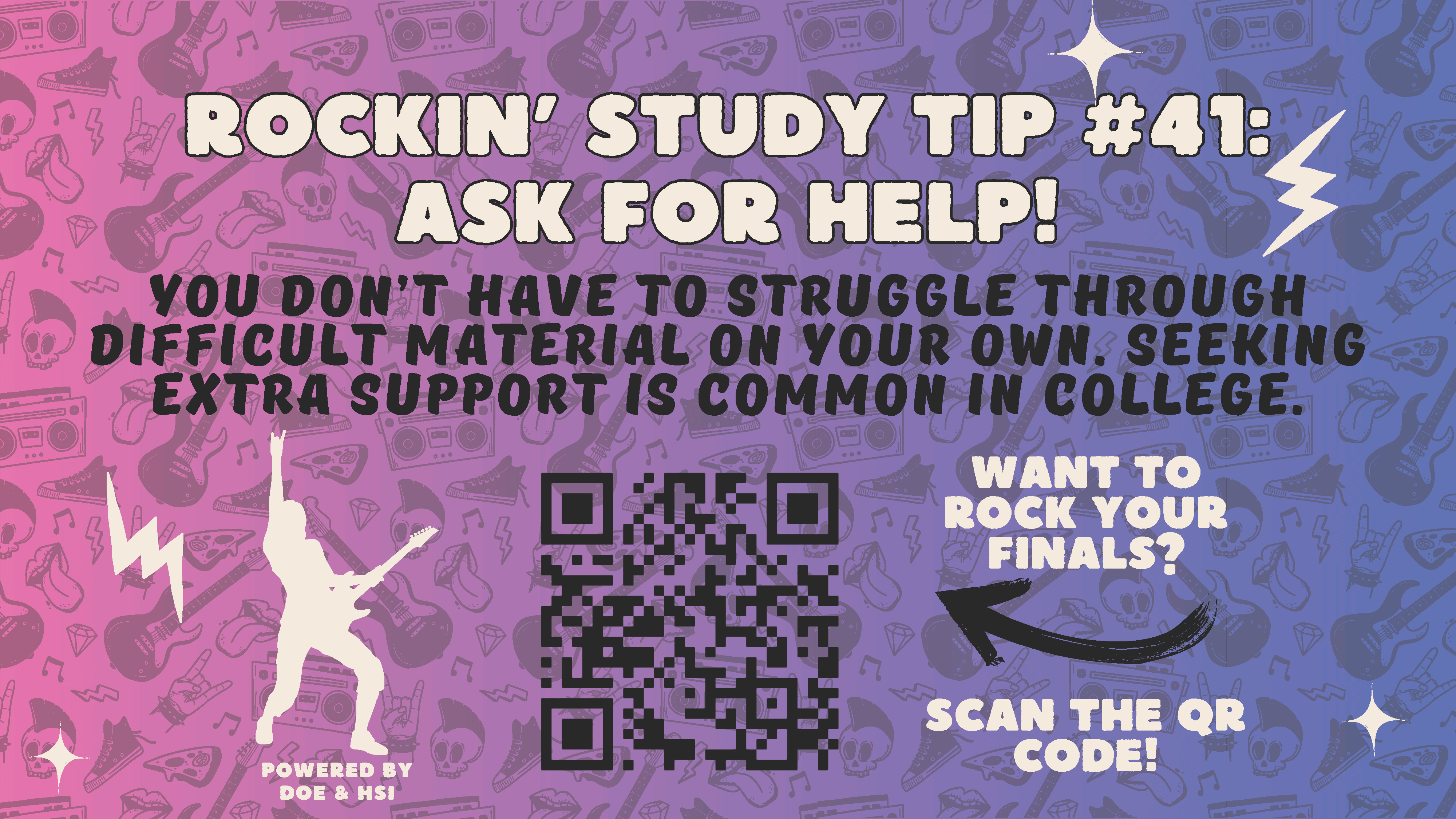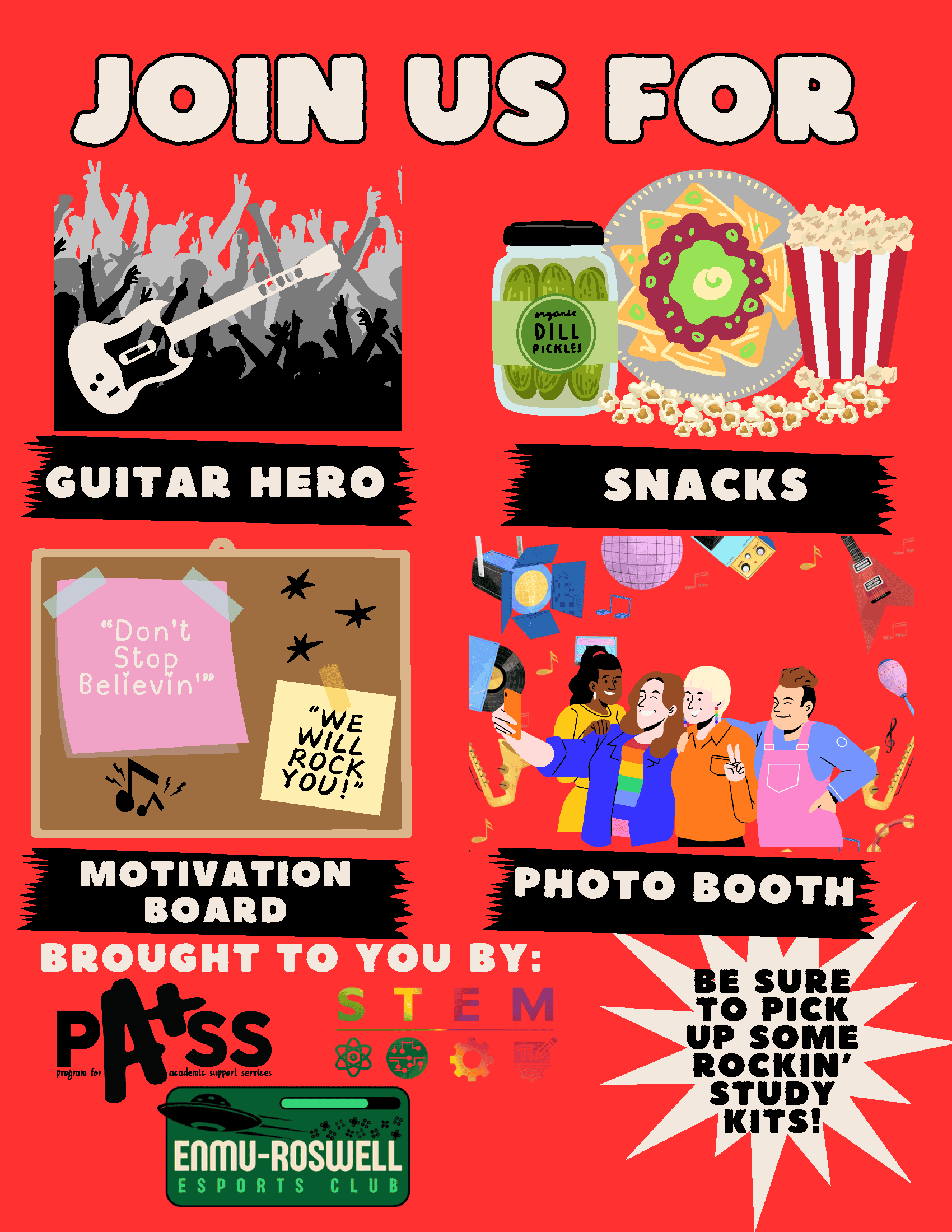 Rock with us between 10:00 AM and 2:00 PM in the student lounge for a two day study event just before Final Exams. Study rooms will also be available all week in the library. We’ll have snacks on hand to keep you fueled up and Guitar Hero for when you are ready for a break. Don’t forget to ask about study kits!