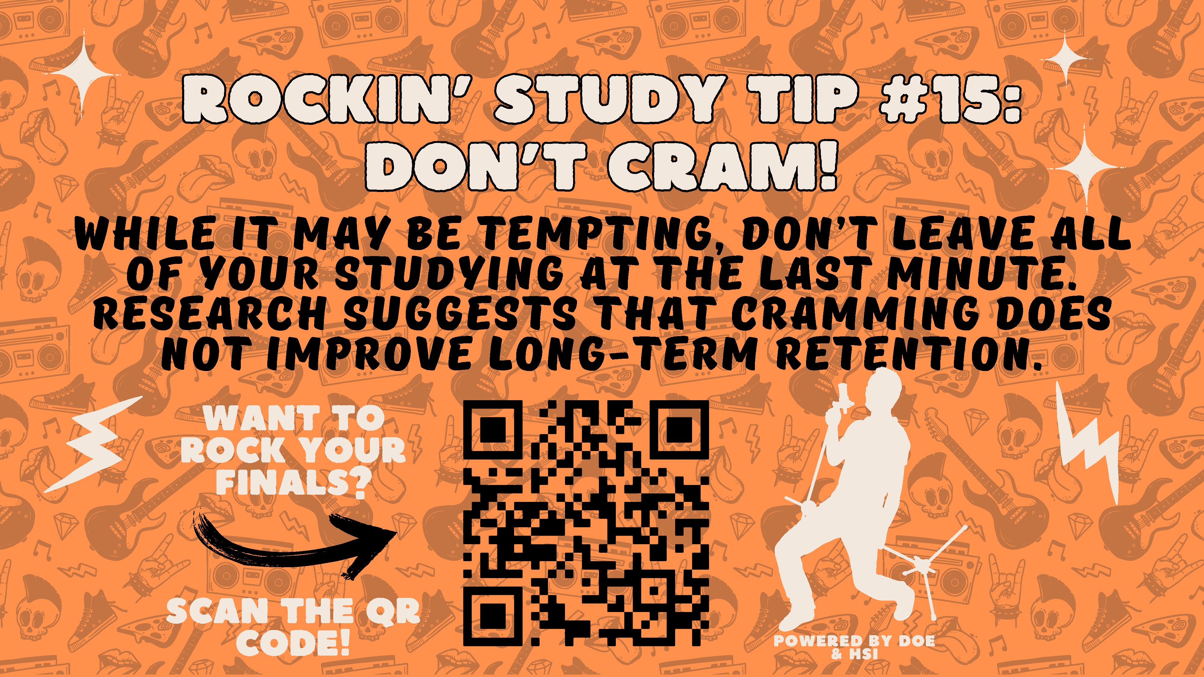 While it may be tempting, don’t leave all of your studying at the last minute. Research suggests that cramming does not improve long-term retention.