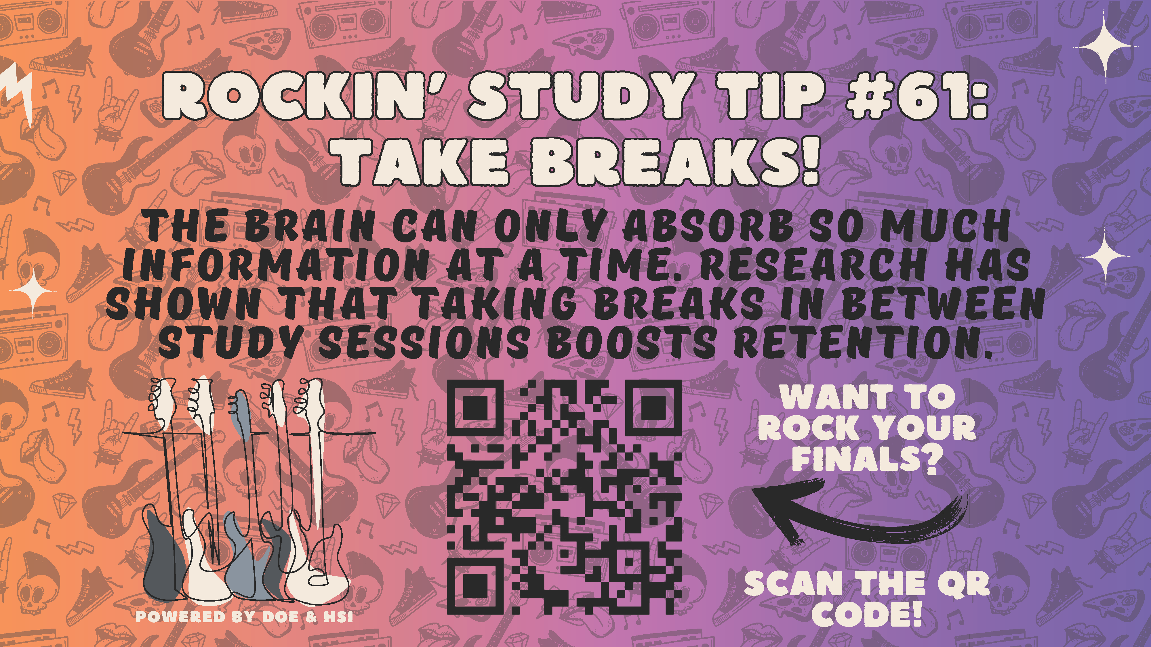 The brain can only absorb so much information at a time. Research has shown that taking breaks in between study sessions boosts retention.
