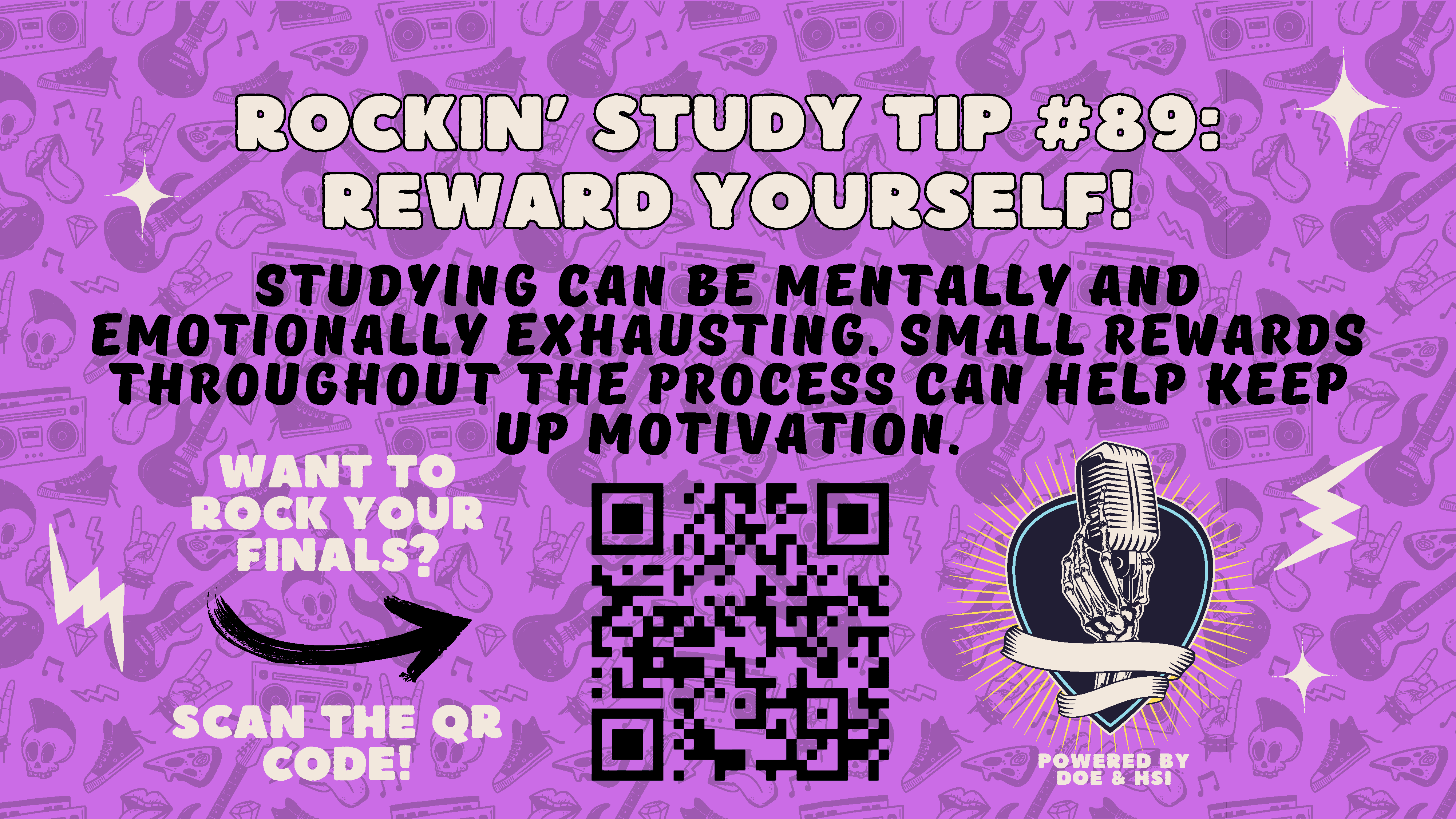 Studying can be mentally and emotionally exhausting. Small rewards throughout the process can help keep up motivation.