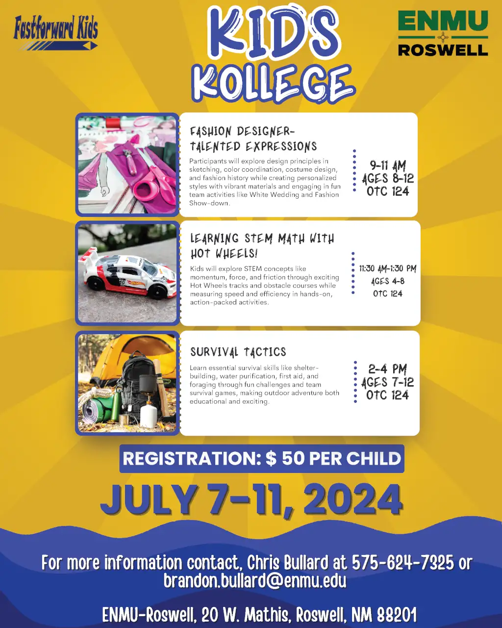 *The price of admission for Kids Kollege includes all activities: Survival Tactics, Fashion Designer, and Hotwheels