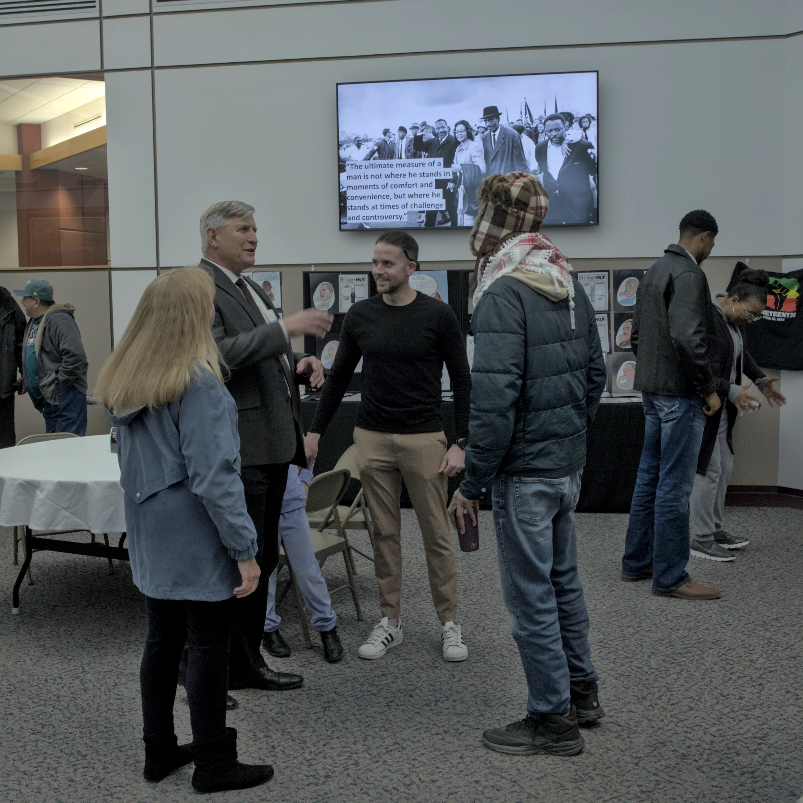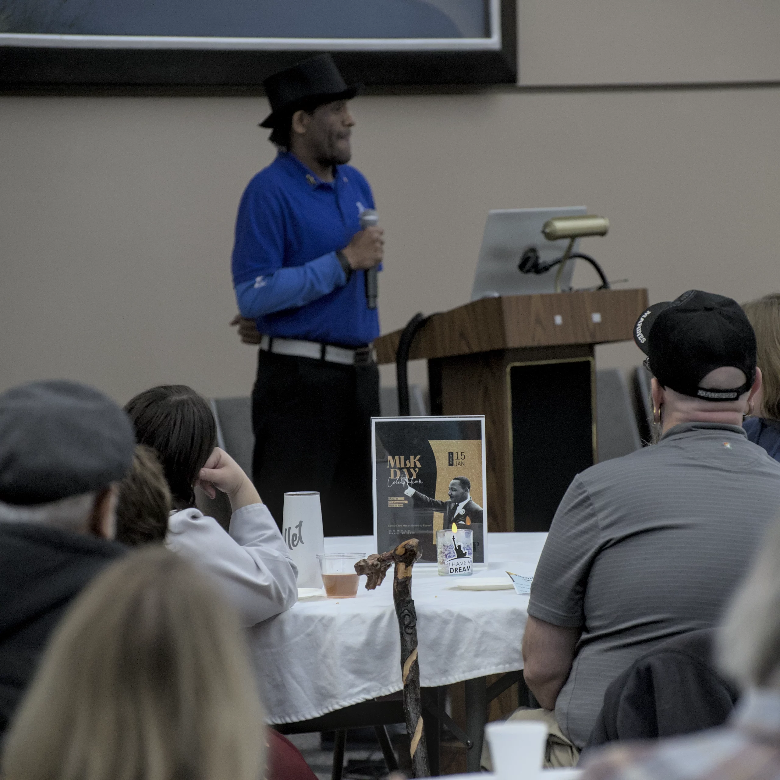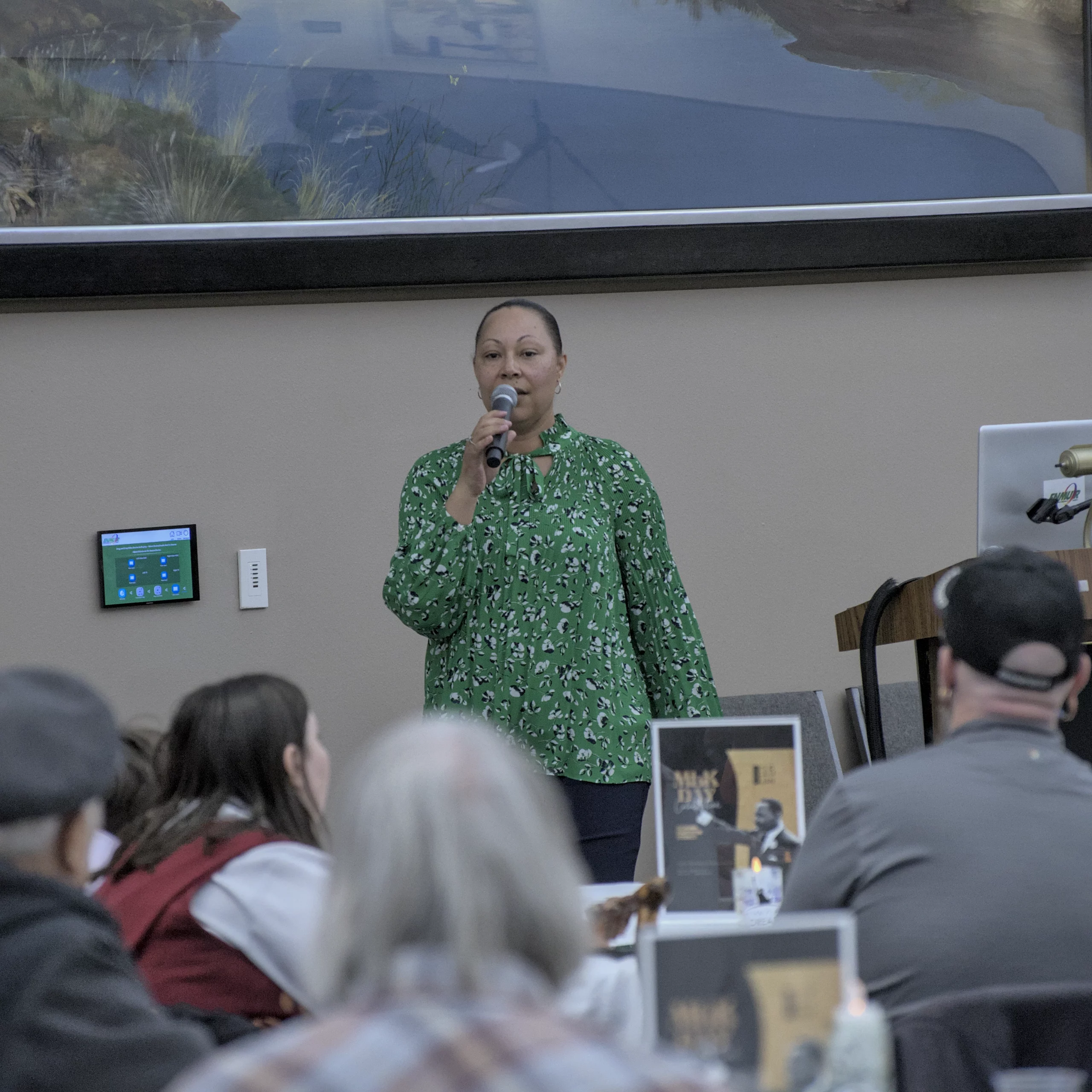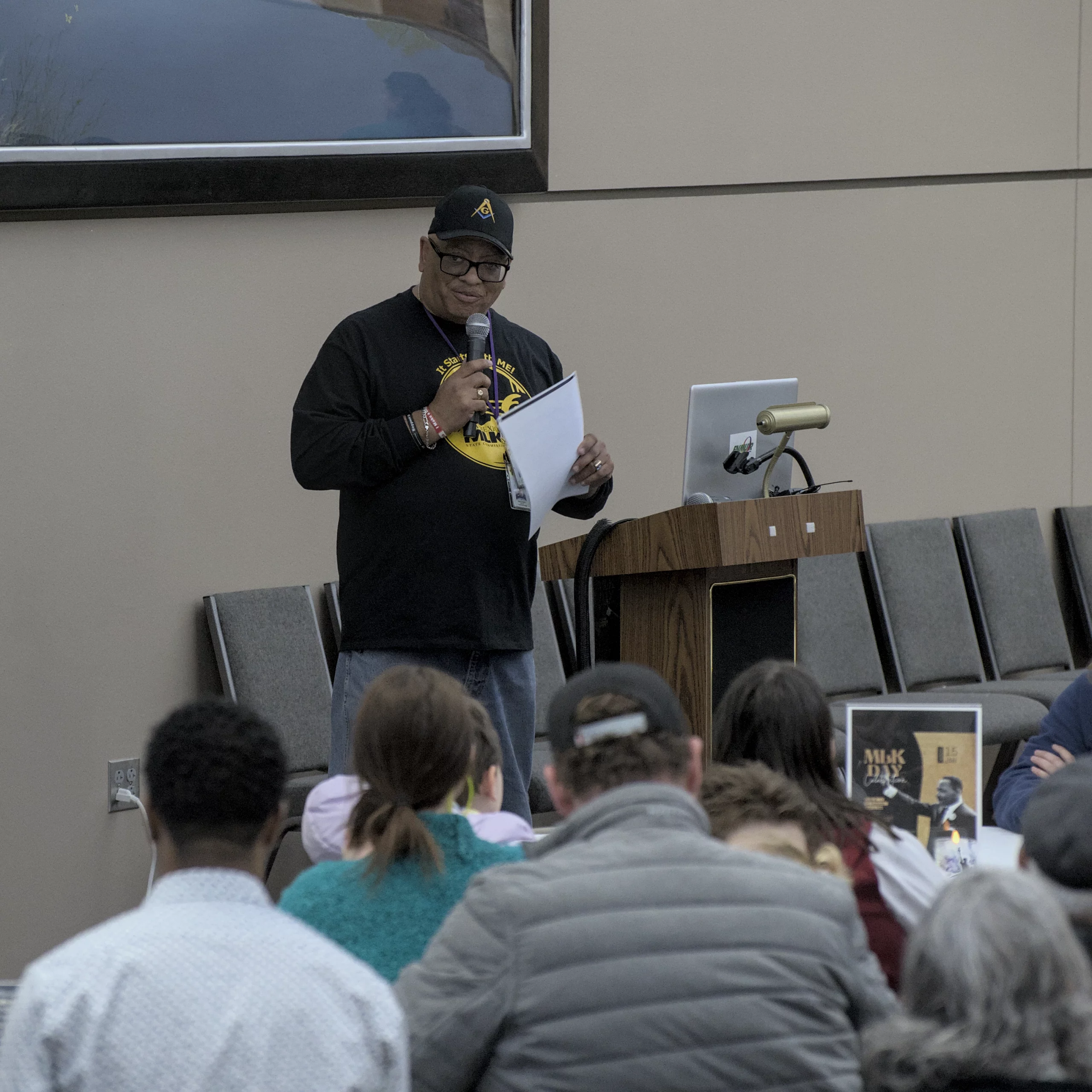 On Monday, ENMU-Roswell staff, faculty, and members of our community gathered together to pay tribute to the remarkable life and enduring legacy of Dr. Martin Luther King Jr. This powerful event celebrated the profound social impact that the civil rights movement, led by Dr. King, has had on our society. The occasion was made even more special by the presence of our esteemed guest speakers Jamila Miller, Harun Williams, Coach Brent Clay, and James Edwards. They captivated the audience with their heartfelt words, sharing their favorite quotes from Dr. King and offering their own interpretation of his profound message.