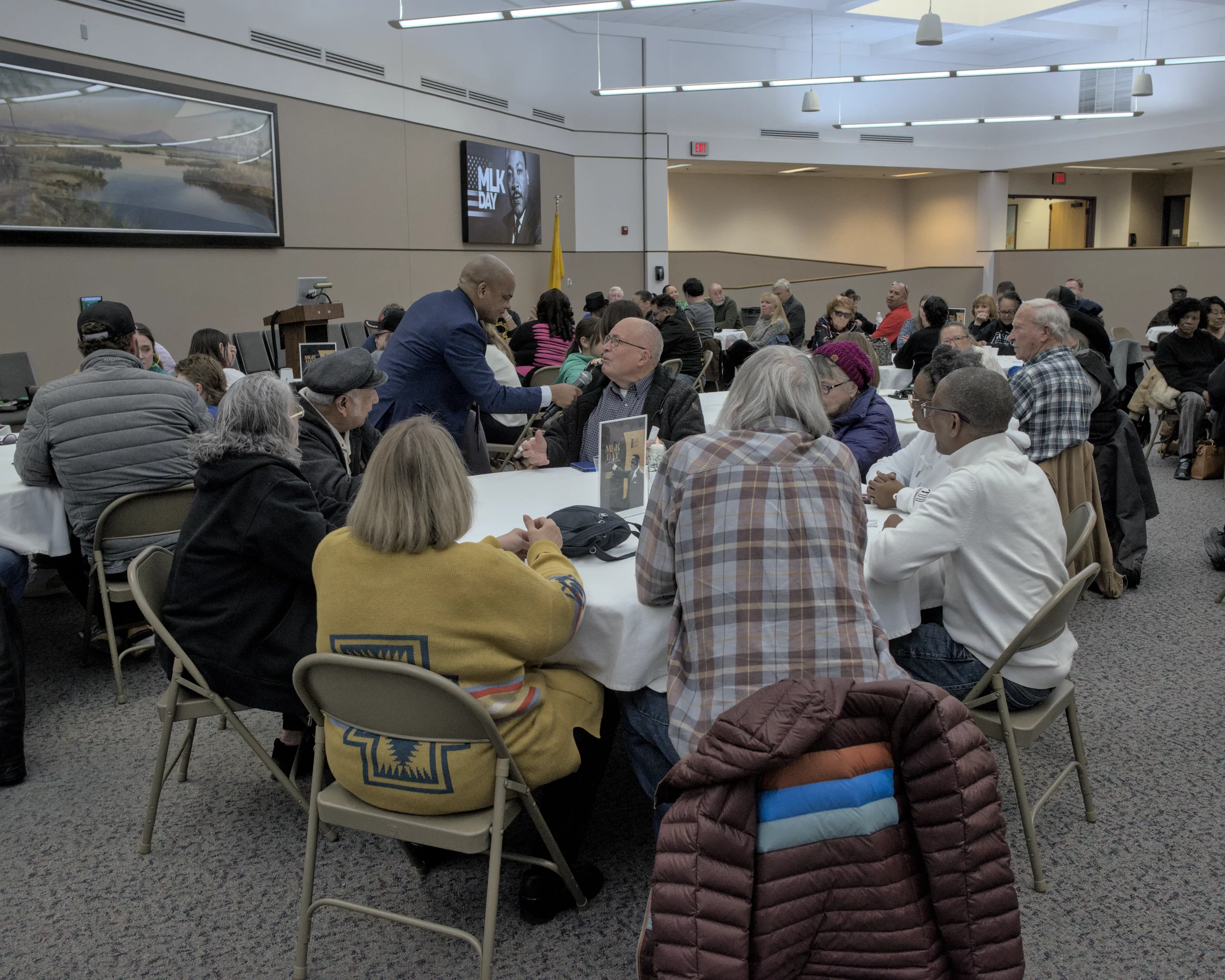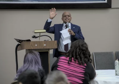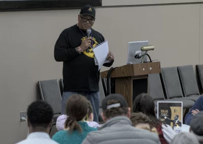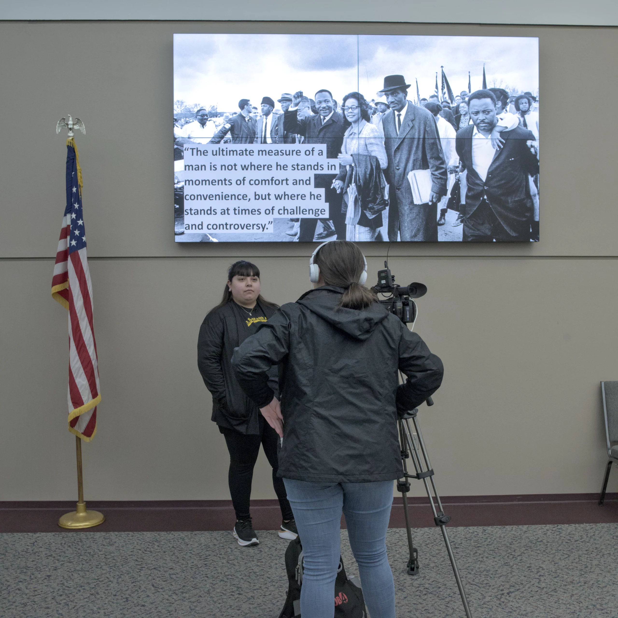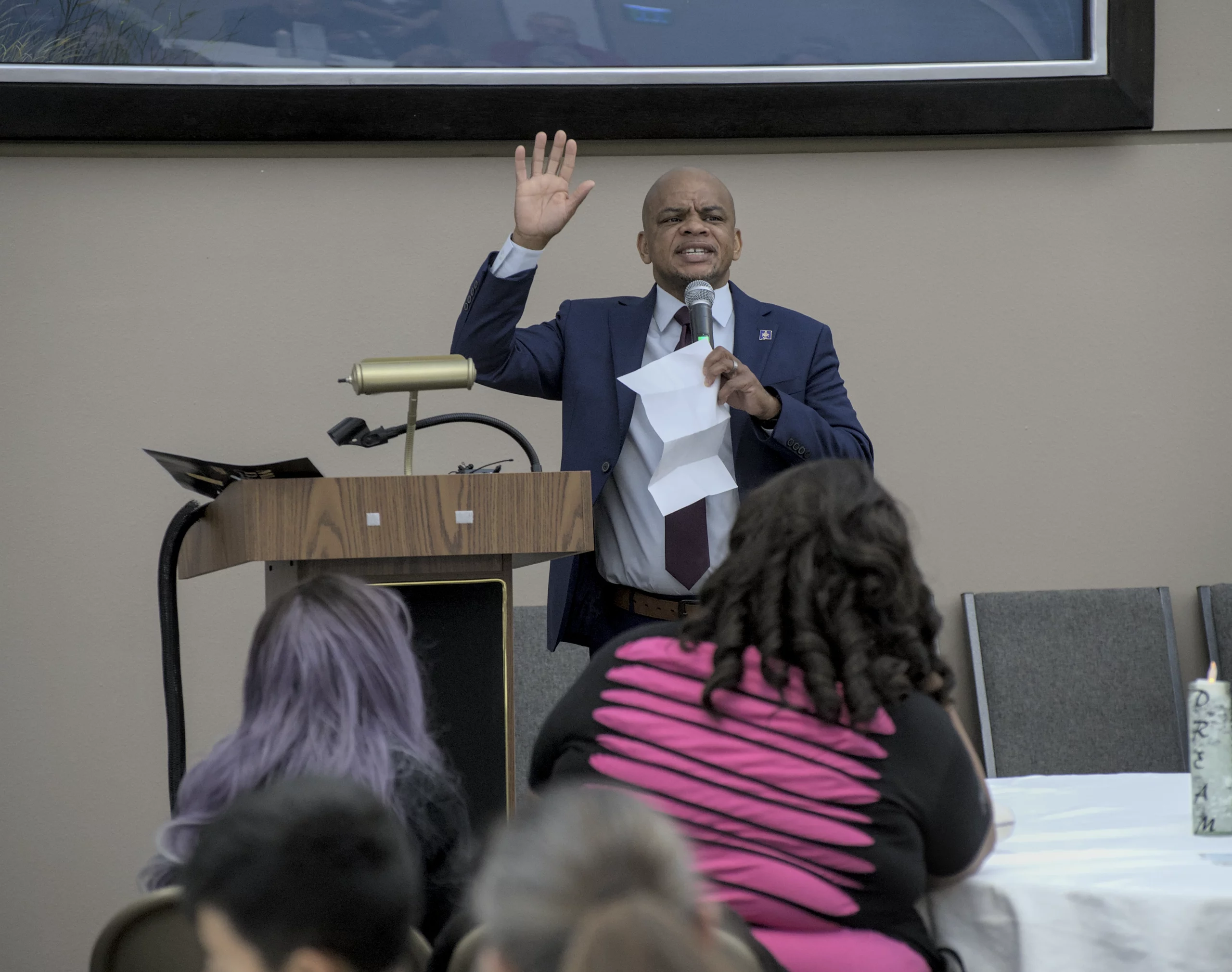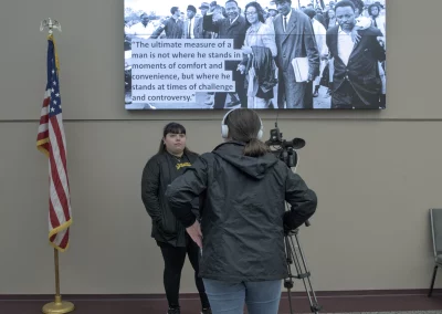 On Monday, ENMU-Roswell staff, faculty, and members of our community gathered together to pay tribute to the remarkable life and enduring legacy of Dr. Martin Luther King Jr. This powerful event celebrated the profound social impact that the civil rights movement, led by Dr. King, has had on our society. The occasion was made even more special by the presence of our esteemed guest speakers Jamila Miller, Harun Williams, Coach Brent Clay, and James Edwards. They captivated the audience with their heartfelt words, sharing their favorite quotes from Dr. King and offering their own interpretation of his profound message.