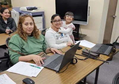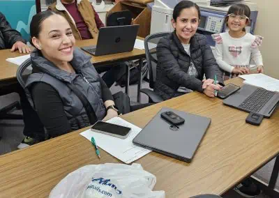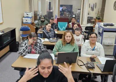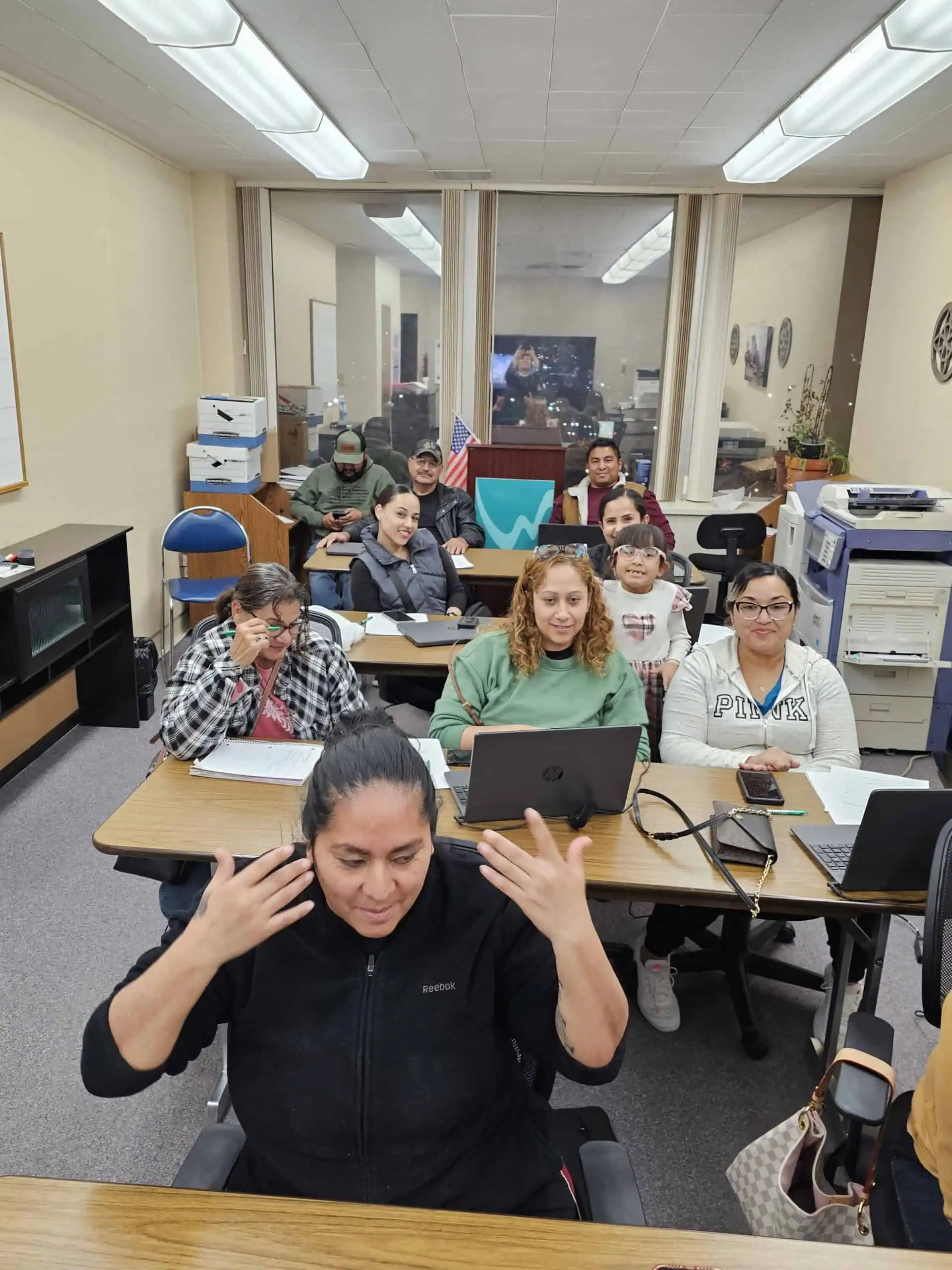 On Monday, December 11, 2023, Spanish-speaking participants completed the first Project-C3PO Computer Literacy Skills class session. For the past seven weeks, a WESST employee, Sylvia Garcia, taught Word 101, PowerPoint 101, and Excel 101. The photos are expressions of shock, surprise, and thankfulness. The Project C-3PO grant gave all participants new laptops for successful attendance and completion of the course.