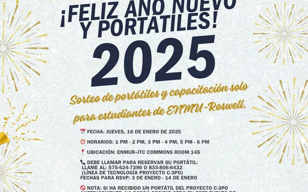 ? ¡Atención estudiantes de ENMUR! ¿Están listos para comenzar un nuevo semestre? ? Es un nuevo año, y nuestro programa C3PO está regalando portátiles, ¡con una sesión de capacitación incluida! ? Fecha: Jueves, 16 de enero de 2025 ⏰ Horarios: 1 PM – 2 PM, 3 PM...